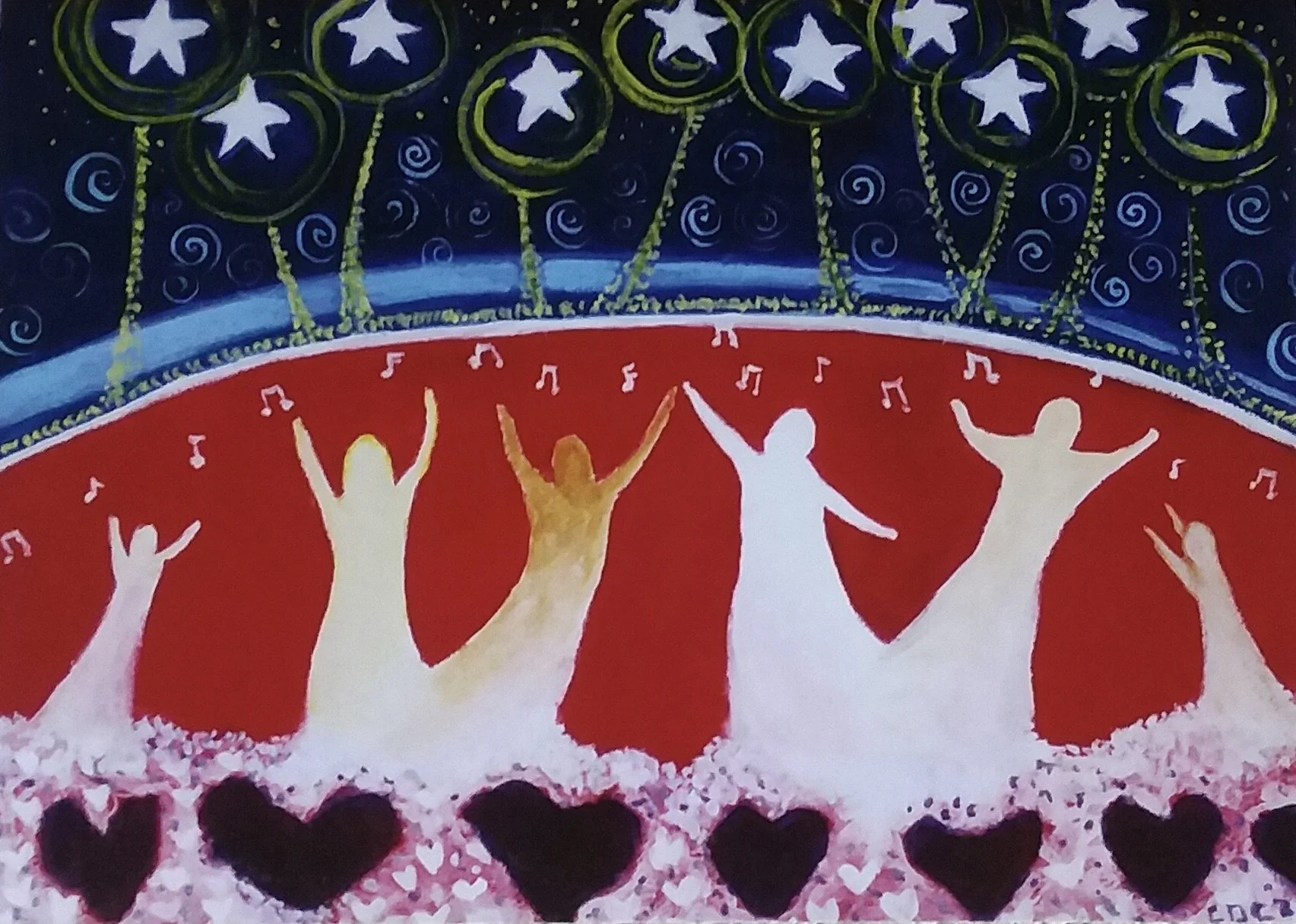 Joyous Angel This card was created in 1998. It was the companion likeness of an ornament that was created for and accepted into the permanent collection of The National Museum of Women in the Arts in Washington, D.C.